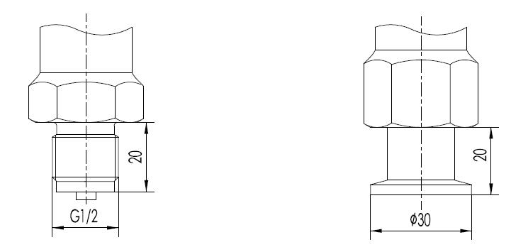 G1/2 外螺紋(代碼4) 真空接口 DIN 28403 KF16 / ISO 2861(代碼5)